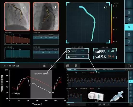 FlashAngio caFFR System(caFFR),是一個冠狀動脈血流儲備分?jǐn)?shù)(FFR)評估系統(tǒng),基于冠狀動脈血管造影的影像計(jì)算冠狀動脈造影血流儲備分?jǐn)?shù),在不使用壓力導(dǎo)絲的情況下,實(shí)現(xiàn)對冠脈血管狹窄病變出FFR值的評估,基于常規(guī)的造影圖像進(jìn)行血管三維重建,通過專用壓力傳感器實(shí)時采集主動脈壓力,利用優(yōu)化計(jì)算機(jī)流體力學(xué)算法實(shí)時計(jì)算FFR值,可用于術(shù)前診斷、術(shù)中指導(dǎo)和術(shù)后評估。
