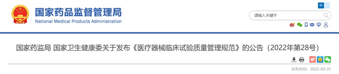 為深化醫(yī)療器械審評審批制度改革,加強(qiáng)醫(yī)療器械臨床試驗(yàn)管理,根據(jù)《醫(yī)療器械監(jiān)督管理?xiàng)l例》(國務(wù)院令第739號)及《醫(yī)療器械注冊與備案管理辦法》(市場監(jiān)管總局令第47號)、《體外診斷試劑注冊與備案管理辦法》(市場監(jiān)管總局令第48號),國家藥品監(jiān)督管理局會(huì)同國家衛(wèi)生健康委員會(huì)組織修訂了《醫(yī)療器械臨床試驗(yàn)質(zhì)量管理規(guī)范》,現(xiàn)予發(fā)布,自2022年5月1日起施行。