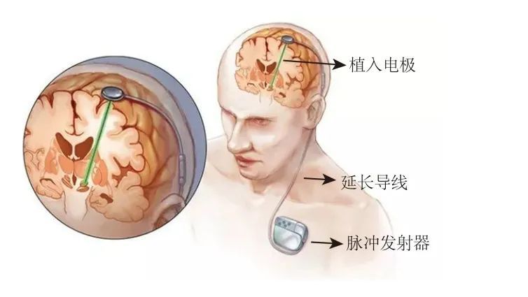 在發(fā)病初期,藥物治療是首選,后期隨著疾病進(jìn)展,藥物逐漸失去療效,就可以使用目前被廣泛認(rèn)可的首選外科療法——腦深部電刺激療法(Deep Brain Stimulation,DBS),也稱(chēng)腦起搏器,它是一種有源植入醫(yī)療器械,于20世紀(jì)70年代出現(xiàn),是通過(guò)立體定向技術(shù),將電極植入腦內(nèi)特定核團(tuán),連接植入胸部的脈沖發(fā)生器,發(fā)放電脈沖對(duì)特定核團(tuán)神經(jīng)元的功能進(jìn)行調(diào)控,以改善癥狀,是目前國(guó)際上最先進(jìn)的神經(jīng)調(diào)控技術(shù),用于藥物不能有效控制運(yùn)動(dòng)障礙癥狀的帕金森患者。