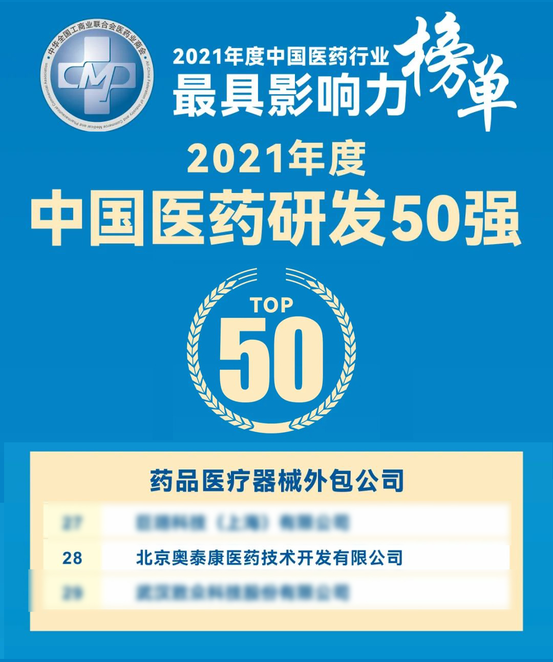 12月8日,全國(guó)工商聯(lián)醫(yī)藥業(yè)商會(huì)發(fā)布2021年度中國(guó)醫(yī)藥行業(yè)最具影響力榜單,經(jīng)過(guò)專(zhuān)家組成員評(píng)選,奧泰康入圍2021年度中國(guó)醫(yī)藥研發(fā)50強(qiáng)榜單。