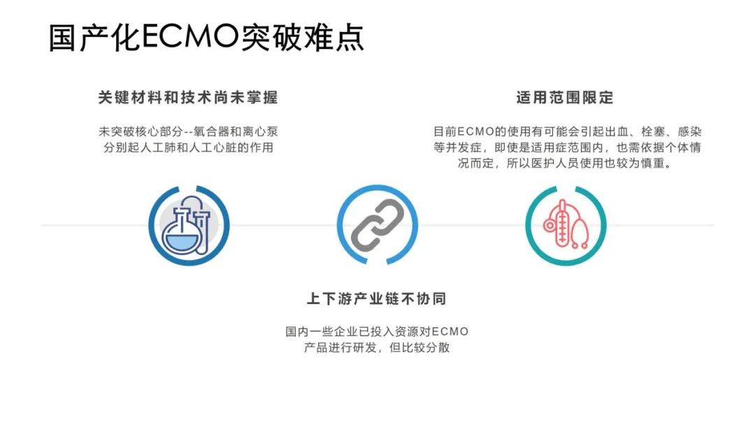 又稱(chēng)“人工肺、葉克膜”,一種重要的體外生命支持技術(shù),將患者的部分靜脈血從體內(nèi)引到體外,經(jīng)膜肺氧合后再由驅(qū)動(dòng)泵將血液回輸體內(nèi),對(duì)嚴(yán)重循環(huán)、呼吸衰竭的病人進(jìn)行有效支持,主要用于心臟功能不全、呼吸功能不全的支持,被譽(yù)為ICU里把守“生死之門(mén)”的最后一道防線,搶救新冠肺炎危重病人的“終極武器”,ECMO作為常規(guī)治療無(wú)效的危重型新冠肺炎患者的挽救性治療設(shè)備,是《新型冠狀病毒肺炎診療方案》中明確的治療措施,但受制于研發(fā)難、生產(chǎn)難、技術(shù)門(mén)檻高、臨床使用制約等多因素限制,國(guó)產(chǎn)企業(yè)無(wú)ECMO設(shè)備獲批上市,我國(guó)ECMO嚴(yán)重依賴(lài)進(jìn)口,主要被美敦力(Medtronic)、理諾琺(LivaNova)和邁維柯(Maquet)三家壟斷。
