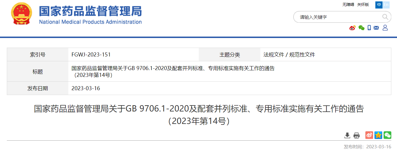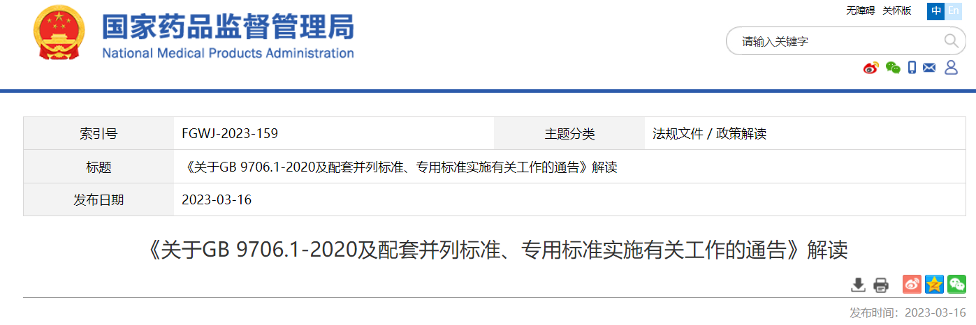 關(guān)于GB 9706.1-2020及配套并列標(biāo)準(zhǔn)、專用標(biāo)準(zhǔn)實(shí)施有關(guān)工作的通告(2023年第14號)及解讀