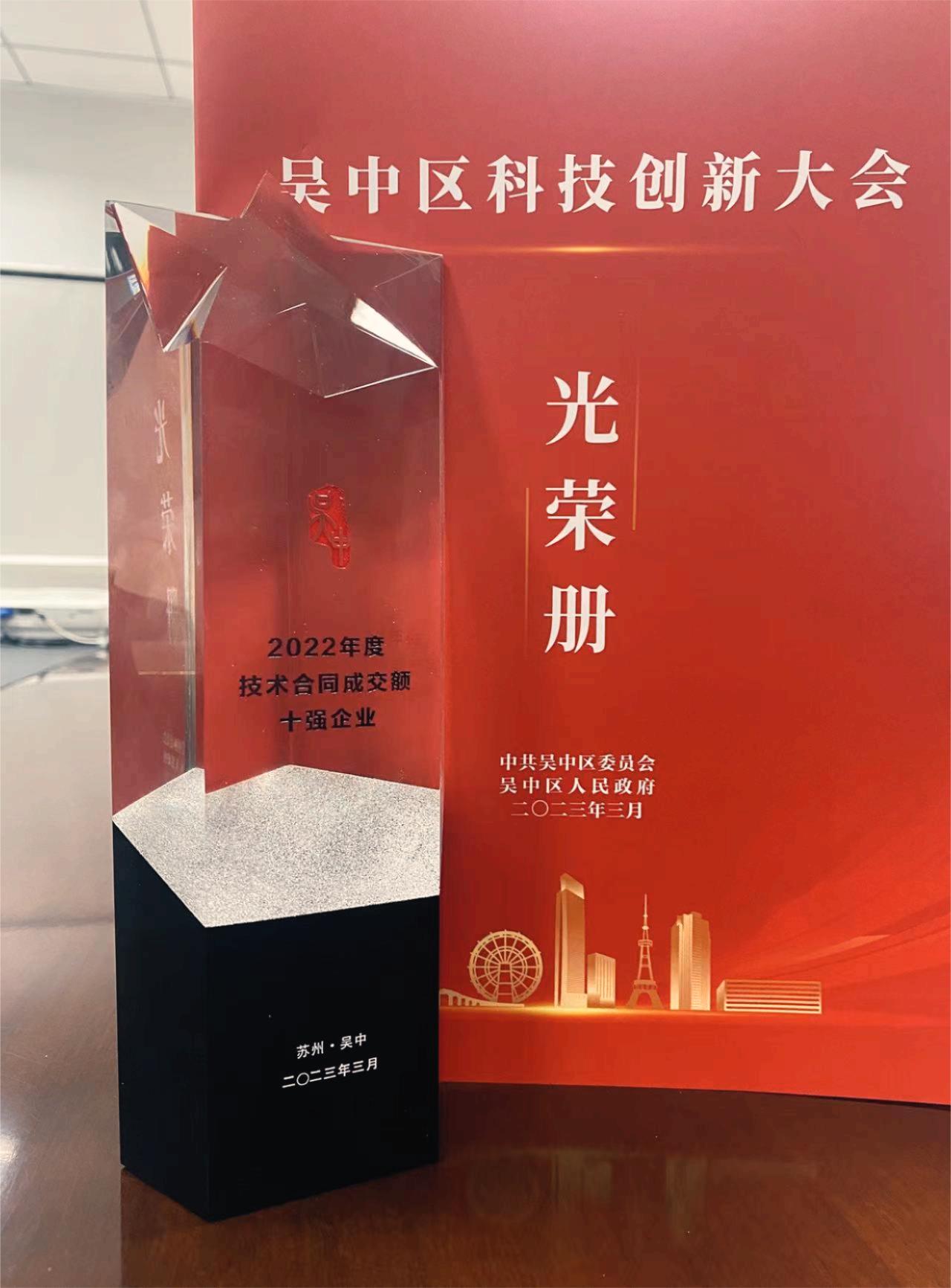 奧泰康「蘇州CDMO中心」入圍吳中區(qū)技術(shù)合同成交額十強(qiáng)?????????3月28日,江蘇吳中召開全區(qū)科技創(chuàng)新大會(huì),奧泰康蘇州CDMO中心——蘇州蘇豪生物材料科技有限公司受邀出席會(huì)議,并獲得吳中區(qū)2022年度技術(shù)合同成交額十強(qiáng)企業(yè)榮譽(yù)。