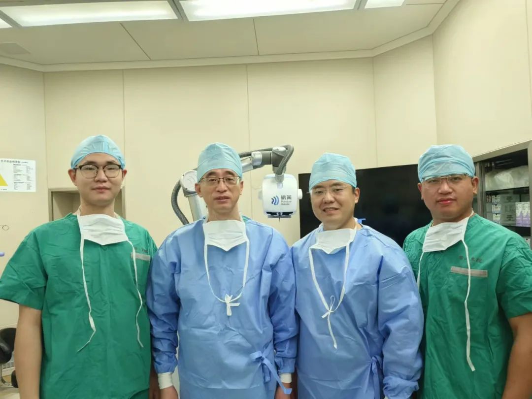 ▲華山醫(yī)院吳文育主任(左二)與醫(yī)護(hù)團(tuán)隊手術(shù)成功后留影