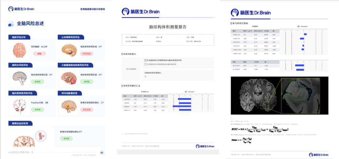 是專注在中樞神經(jīng)系統(tǒng)疾病的人工智能診斷分析平臺,基于醫(yī)未自行搭建的全年齡段中國人群全腦結(jié)構(gòu)影像數(shù)據(jù)庫,結(jié)合前沿的大數(shù)據(jù)分析和人工智能等核心技術(shù),快速、精準(zhǔn)評估全腦結(jié)構(gòu)變化、腦白質(zhì)病變、微出血灶及腦血流量等,以量化、直觀的結(jié)果,輔助臨床做出超早期的精準(zhǔn)診斷及疾病進(jìn)展預(yù)測。