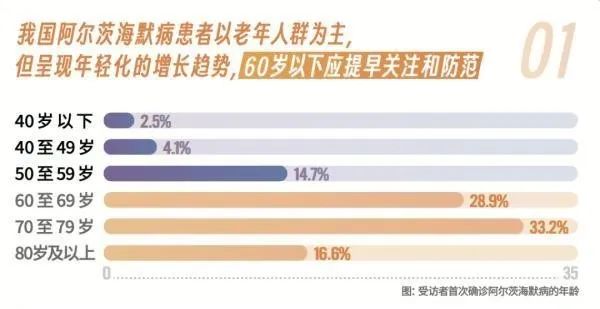 數(shù)據(jù)表明,首次確診阿爾茨海默病的人群中,年齡在60至79歲之間的人群占比最高,為62.1%。但值得注意的是,60歲以下的阿爾茨海默病發(fā)病患者在本次調(diào)查中占到了21.3%,相比國際上報(bào)道的早發(fā)型阿爾茨海默病占比5-10%更多,表明阿爾茨海默病在我國發(fā)病越來越年輕化。由于這類罹患人群尚處工作年齡,需要引起全社會的高度重視,強(qiáng)化全人群健康教育,加強(qiáng)疾病預(yù)防、早期篩查和診斷。