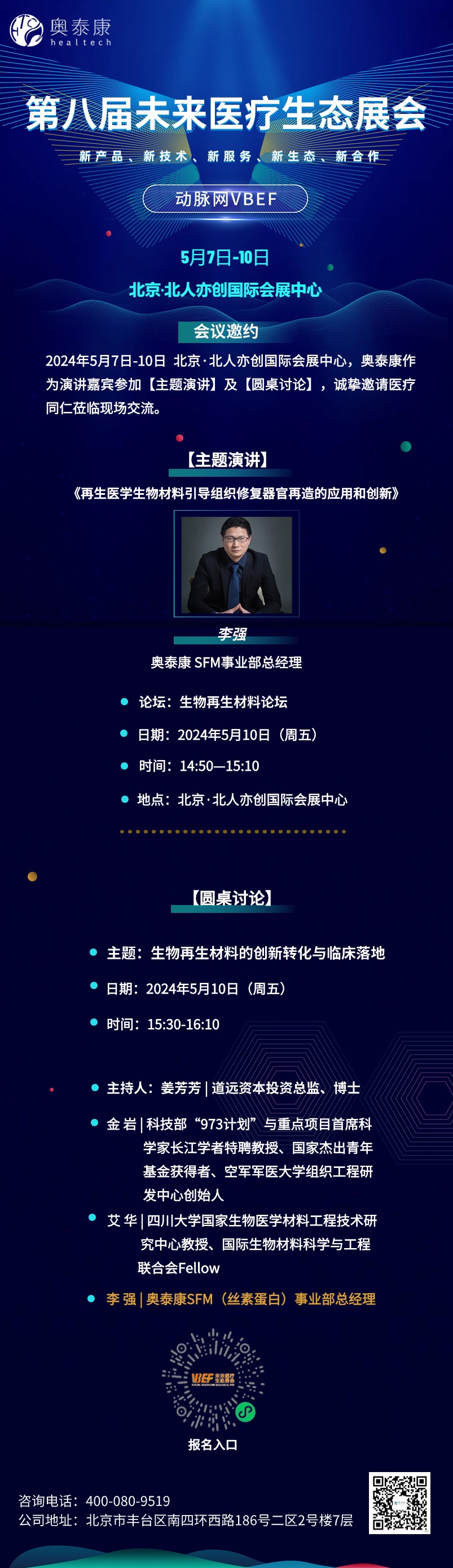 ??動(dòng)脈網(wǎng)·VBEF——第八屆未來醫(yī)療生態(tài)展會(huì),奧泰康·再生醫(yī)學(xué)生物材料演講???5月10日,與您相約??北京·北人亦創(chuàng)國際會(huì)展中心