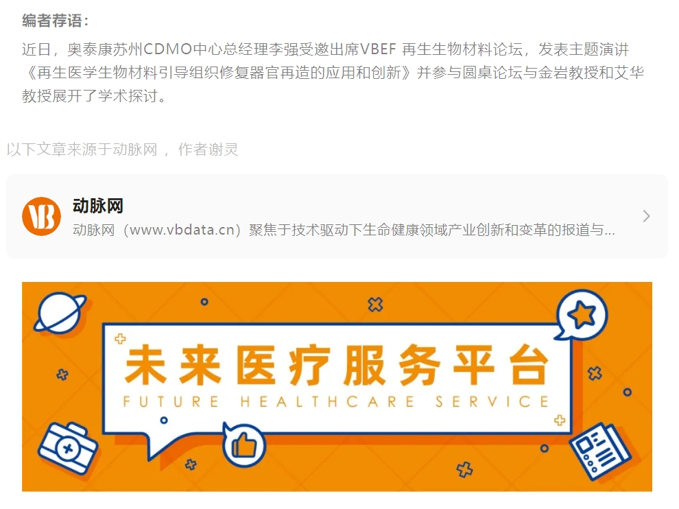 2024年5月7日至10日,第八屆未來醫(yī)療生態(tài)展會以“新青年”為主題,由VB100、動脈網、蛋殼研究院、動脈橙主辦,天津經濟技術開發(fā)區(qū)(TEDA)聯合主辦,與天津濱海中關村科技園管委會、北塘灣數字經濟產業(yè)園戰(zhàn)略合作,于北京·北人亦創(chuàng)國際會展中心正式召開。作為此次論壇備受關注的熱門論壇之一,生物再生材料論壇于5月10日下午圓滿落幕。