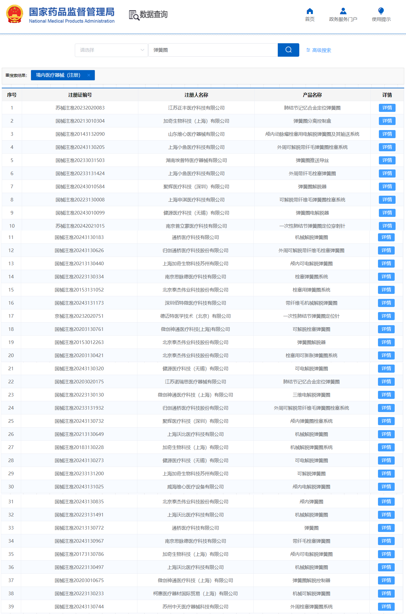 國(guó)內(nèi)已獲批的彈簧圈產(chǎn)品(含外周)