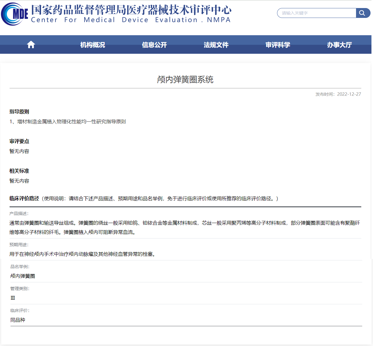 MA市場(chǎng)準(zhǔn)入·解決方案系列 「神經(jīng)介入」②顱內(nèi)彈簧圈產(chǎn)品 ——臨床評(píng)價(jià)路徑、技術(shù)審評(píng)關(guān)注點(diǎn)、已獲批產(chǎn)品等??根據(jù)《醫(yī)療器械臨床評(píng)價(jià)技術(shù)指導(dǎo)原則》可知,臨床評(píng)價(jià)的路徑主要包括:免臨床評(píng)價(jià)(豁免臨床)、臨床試驗(yàn)、同品種等同性論證(簡(jiǎn)稱同品種)三種路徑?!?strong>MA市場(chǎng)準(zhǔn)入系列】根據(jù)不同臨床領(lǐng)域的醫(yī)療器械劃分,對(duì)其臨床評(píng)價(jià)路徑及相關(guān)政策等進(jìn)行梳理,包括神經(jīng)介入、心腦血管、人工智能、醫(yī)美、腫瘤、骨科、眼科等,旨在幫助大家更好的了解產(chǎn)品上市流程。