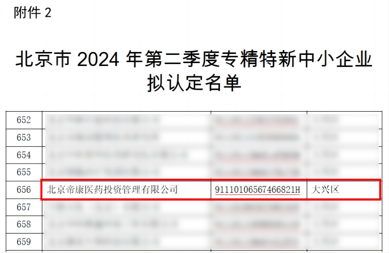 2024年8月8日,北京市經(jīng)濟(jì)和信息化局發(fā)布通知公告《關(guān)于對(duì)北京市2024年度第二季度專精特新中小企業(yè)名單進(jìn)行公示的通知》,奧泰康北京CDMO中心(北京帝康醫(yī)藥投資管理有限公司)被成功認(rèn)定為北京市“專精特新”中小企業(yè),這也是繼國家高新技術(shù)企業(yè)、中關(guān)村高新技術(shù)企業(yè)、北京市創(chuàng)新型中小企業(yè)之后獲得的又一項(xiàng)重要資質(zhì)。