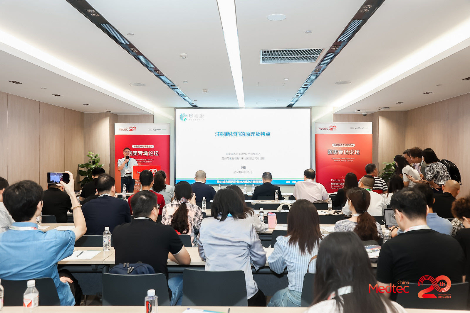 9月27日,上海世博展覽館,Medtec China 2024暨第十八屆國際醫(yī)療器械設計與制造技術展覽會落下帷幕,這一盛會匯集了來自全球各地的頂尖企業(yè)、科研機構及行業(yè)專家。奧泰康作為參展商受邀參加會議,在醫(yī)美專場論壇中,奧泰康蘇州CDMO中心負責人、蘇州蘇豪生物材料科技有限公司總經(jīng)理李強以《注射新材料的原理及特點》為主題進行分享,與行業(yè)伙伴共同探索醫(yī)療器械領域的最新趨勢與未來發(fā)展方向。
