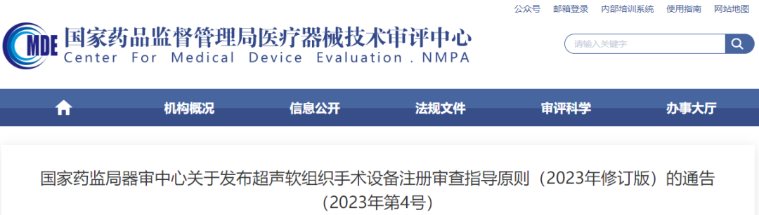 ●2023年3月31日,國家藥監(jiān)局器審中心修訂發(fā)布了《超聲軟組織手術(shù)設(shè)備注冊審查指導(dǎo)原則》(2023年修訂版)。(附件:超聲軟組織手術(shù)設(shè)備注冊審查指導(dǎo)原則(2023年修訂版)