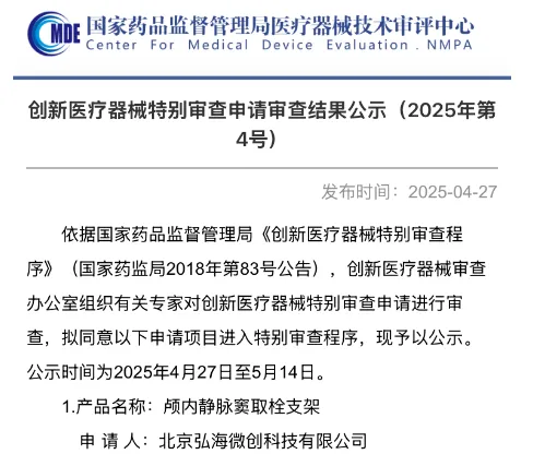近日,我司自主研發(fā)的腦靜脈介入治療產(chǎn)品顱內(nèi)靜脈竇取栓支架,已正式進入國家創(chuàng)新醫(yī)療器械特別審批程序(綠色通道)! 這是對我們團隊技術(shù)實力與臨床價值的權(quán)威認可,也標(biāo)志著中國腦靜脈疾病治療邁入全新階段。