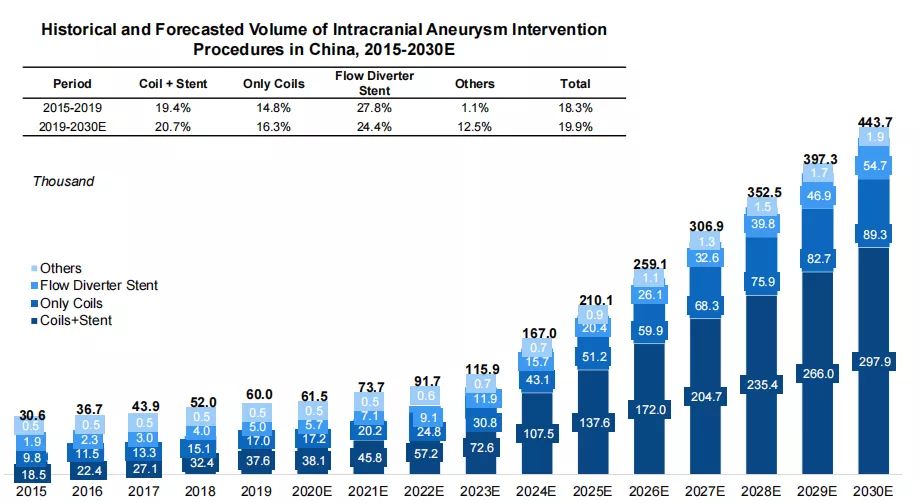 相較于歐美人群,我國(guó)顱內(nèi)動(dòng)脈瘤普遍呈現(xiàn)“瘤體小、載瘤動(dòng)脈管徑細(xì)”的特點(diǎn),但目前市場(chǎng)上的的動(dòng)脈瘤栓塞彈簧圈仍以進(jìn)口產(chǎn)品為主,國(guó)產(chǎn)替代率尚不足10%,亟需一款適合國(guó)人的超柔軟彈簧圈。通橋鳳彈簧圈的上市,填補(bǔ)了這一市場(chǎng)空白。通橋鳳彈簧圈圈體更柔軟,推送系統(tǒng)更柔順,能更好地順應(yīng)瘤體形態(tài),提高手術(shù)安全性和栓塞效果。 同時(shí),通橋鳳彈簧圈采用了機(jī)械解脫的結(jié)構(gòu),與電解脫和水解脫方式相比,解脫過(guò)程簡(jiǎn)單快速、安全可靠,術(shù)者只需“一折一拉”,即刻解脫,平均解脫時(shí)間小于1秒。 在型號(hào)方面,通橋鳳彈簧圈系統(tǒng)擁有十分齊全的規(guī)格型號(hào),包括6個(gè)1mm型號(hào),可以覆蓋多數(shù)復(fù)雜病變,為小動(dòng)脈瘤栓塞提供更多選擇,為患者和醫(yī)生提供全方位栓塞治療方案。 隨著中國(guó)人口老齡化的加劇及國(guó)內(nèi)神經(jīng)介入技術(shù)的快速發(fā)展,我國(guó)的神經(jīng)介入醫(yī)療器械市場(chǎng)快速增長(zhǎng)。《中國(guó)腦卒中防治報(bào)告(2020)》指出,我國(guó)顱內(nèi)動(dòng)脈瘤的檢出率高達(dá)7%,且呈現(xiàn)逐年上升趨勢(shì)。根據(jù)弗若斯特沙利文分析,中國(guó)顱內(nèi)動(dòng)脈瘤介入手術(shù)量由2018年的5.2萬(wàn)臺(tái)到2021年7.37萬(wàn)臺(tái),到2030年將進(jìn)一步增加到44.4萬(wàn)臺(tái),市場(chǎng)空間巨大。